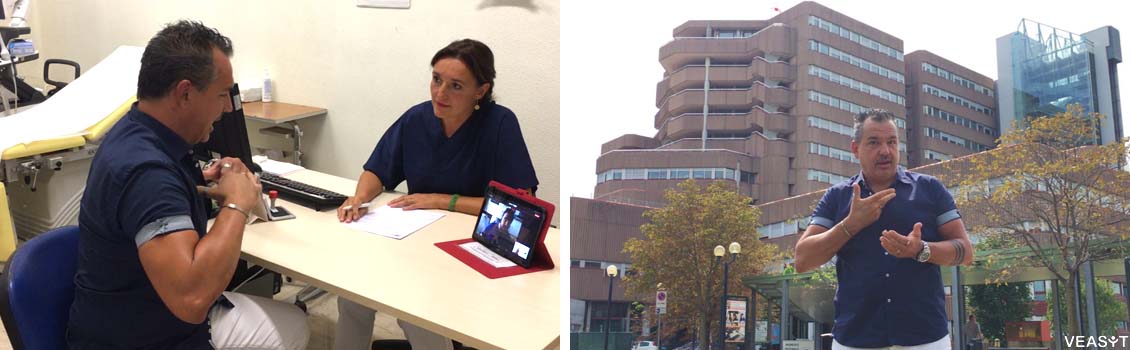 Il servizio attivo su tablet  in un'azienda socio-sanitaria; dialogo medico-paziente tramite video-interprete LIS (immagine a sinistra)